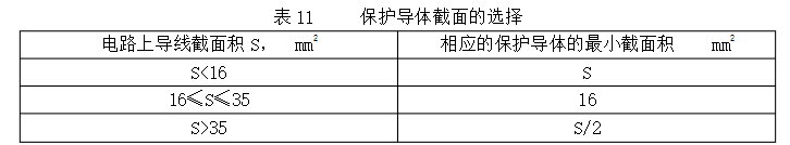 6當(dāng)運(yùn)用直流電源設(shè)備構(gòu)成作為維護(hù)電路部件時(shí),其導(dǎo)線截面積按表11選取,也可通過計(jì)算辦法選取。