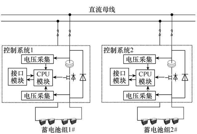 將并聯保護器銜接至直流屏及蓄電池組之間,由直流屏提供直流輸入,由并聯保護器操控蓄電池組的充電電壓及充電電流。每組電池配備相應的操控系統進行獨立的充放電管理。為保證在外部溝通供電異常時,使蓄電池組可以及時對負載進行供電,在蓄電池與直流母線之間的銜接選用單向器材直接銜接,以防止放電環流的影響。